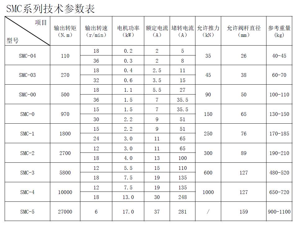 SMC-04/電動執(zhí)行器、SMC-00、SMC-0、SMC-1